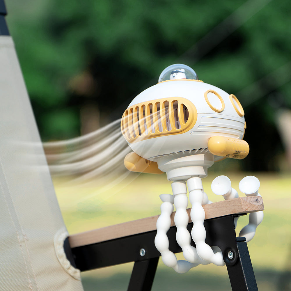 Oriday 宇宙飛行士ベビーカーファン|羽なしタコ型デザイン・USB充電・静音&安全・赤ちゃん用ポータブル卓上&ハンディファン