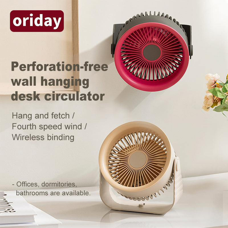 "Oriday small desktop fan, circulating fan, no-drill wall mount, USB charging, suitable for offices, students, dormitories, with strong airflow, oriental quality"