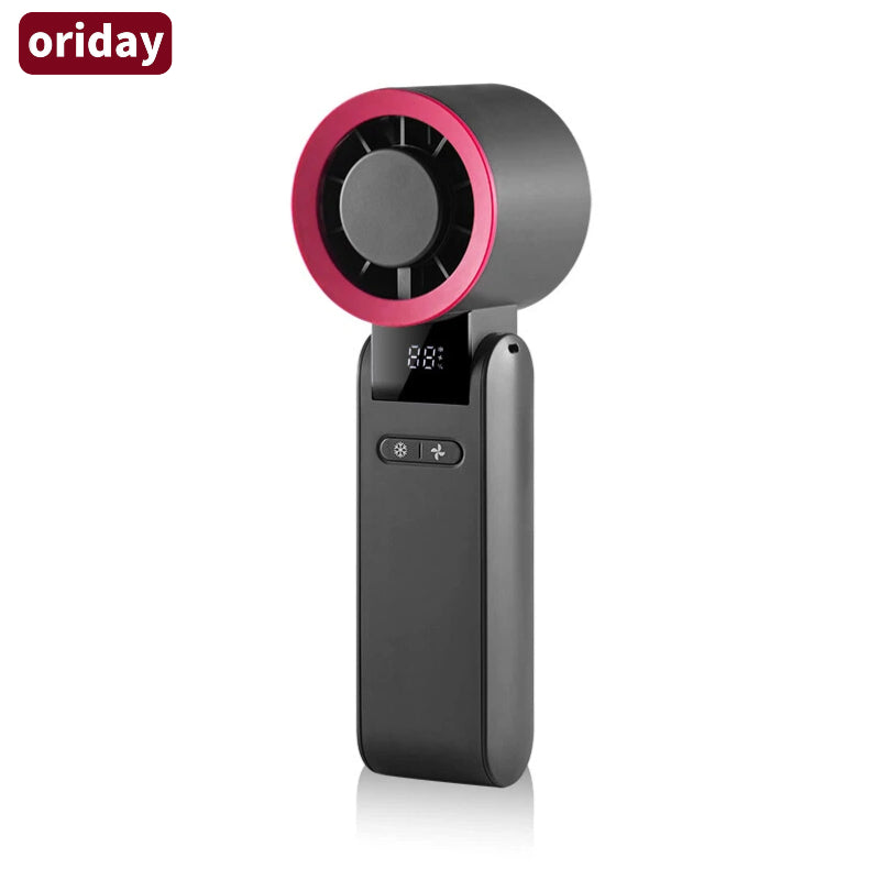Oriday Portable Foldable Cooling Fan with Large Capacity Battery for Long-lasting Performance, 4 Speeds, 10,000 RPM, Silent Powerful Wind, High-definition Digital Display for Battery and Speed Levels, Instant Cooling with One-Click Ice Compress