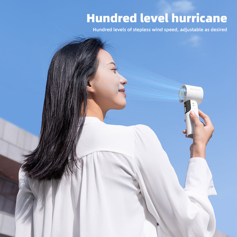 Oriday semiconductor handheld cooling fan – compact size, 100-speed levels, strong airflow, USB rechargeable, ultra-long battery life, high-speed cooling. Perfect for home, students, dormitories, offices, outdoor use, and portable on-the-go.