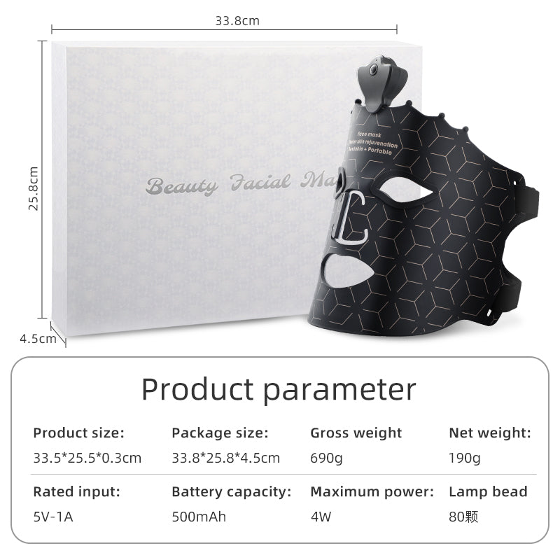 包裝清單:面膜儀,充電線,說明書,固定綁帶,眼罩
