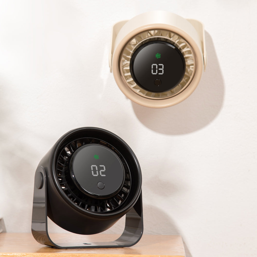 Oriday【夏のひんやり必需品】壁掛け・卓上2WAYファン | 3000mAh長持ち充電式バッテリー | ブラシレス静音+LEDデジタル表示 | キャンプ・オフィスに最適 | アプリコット/ブラック展開