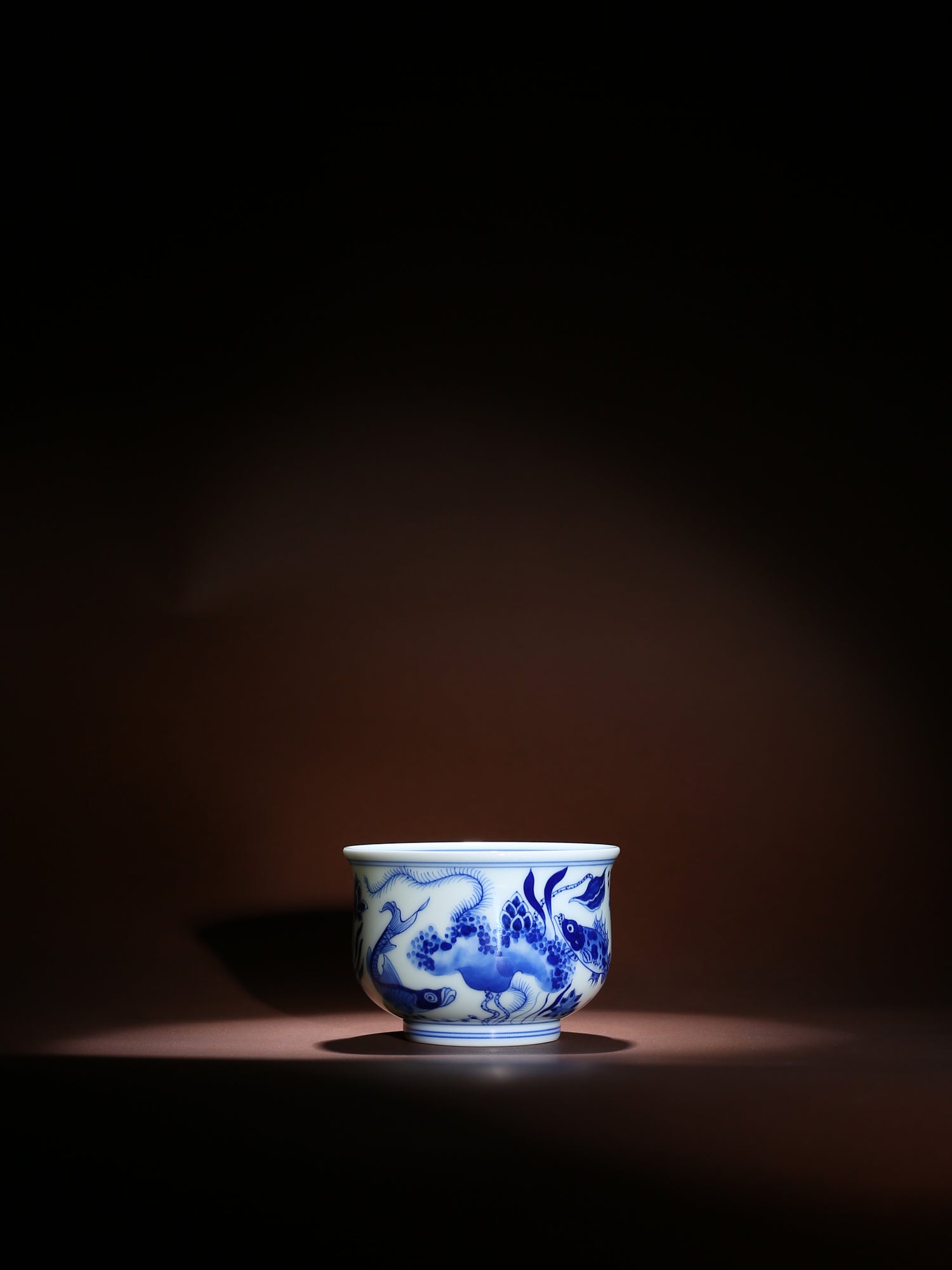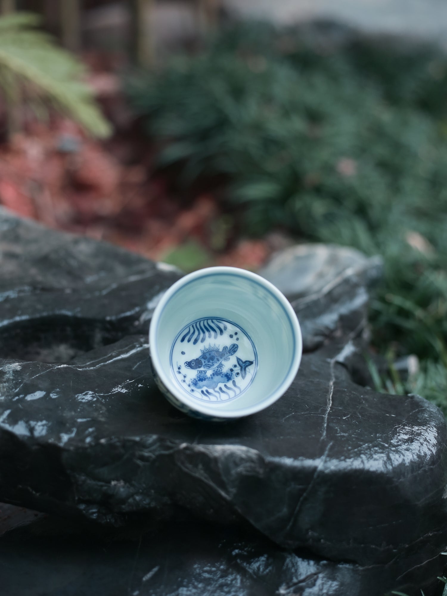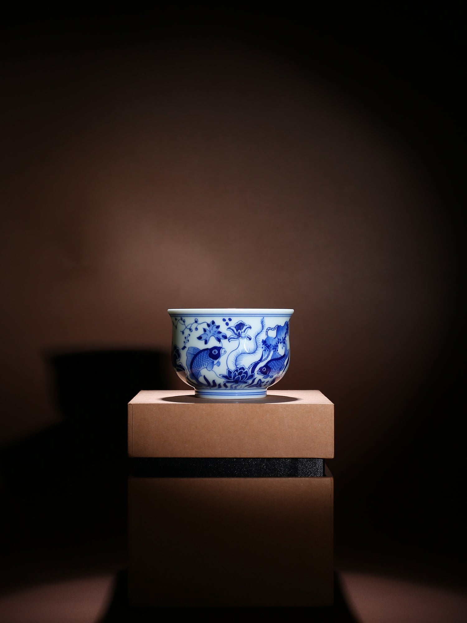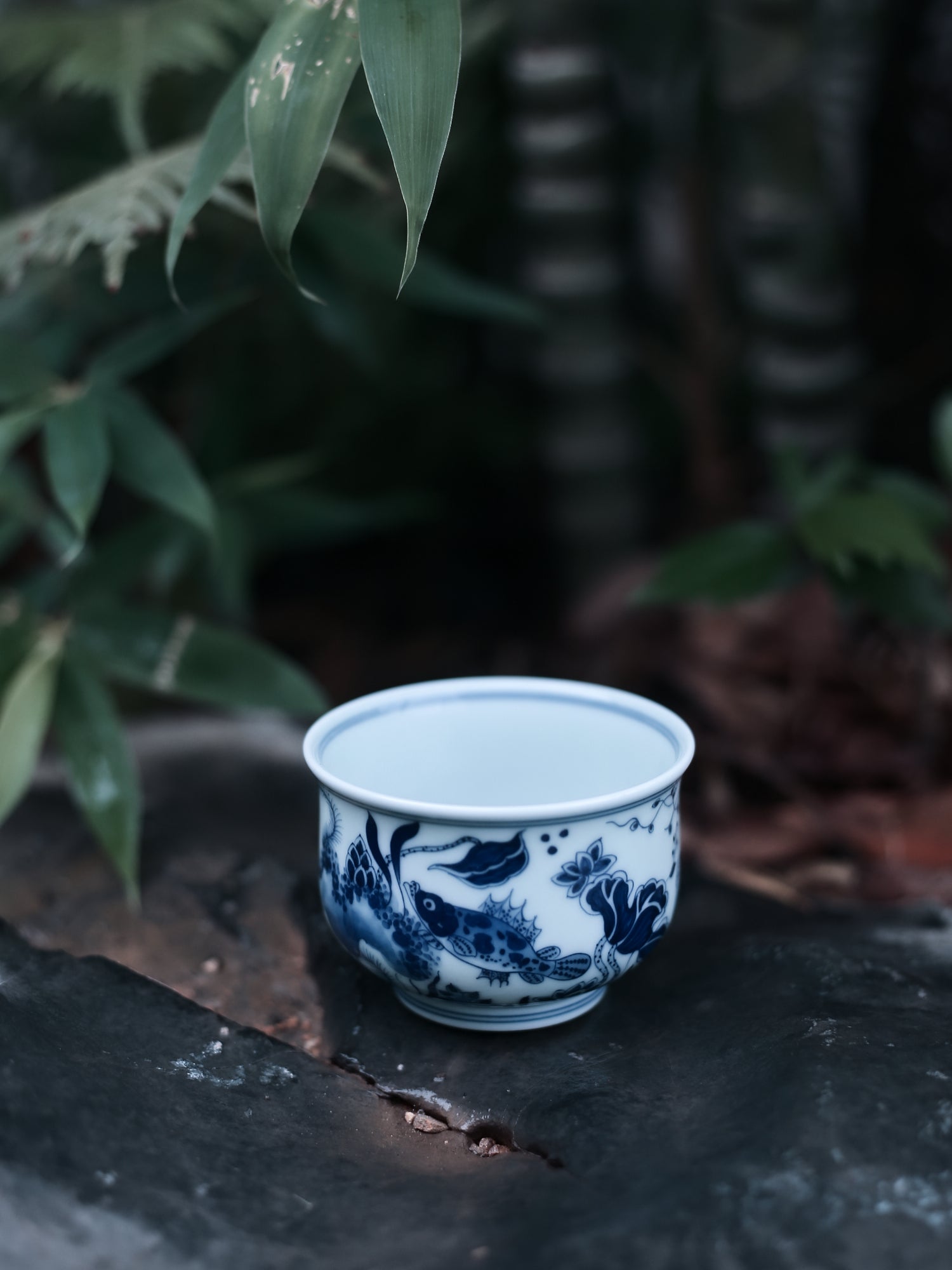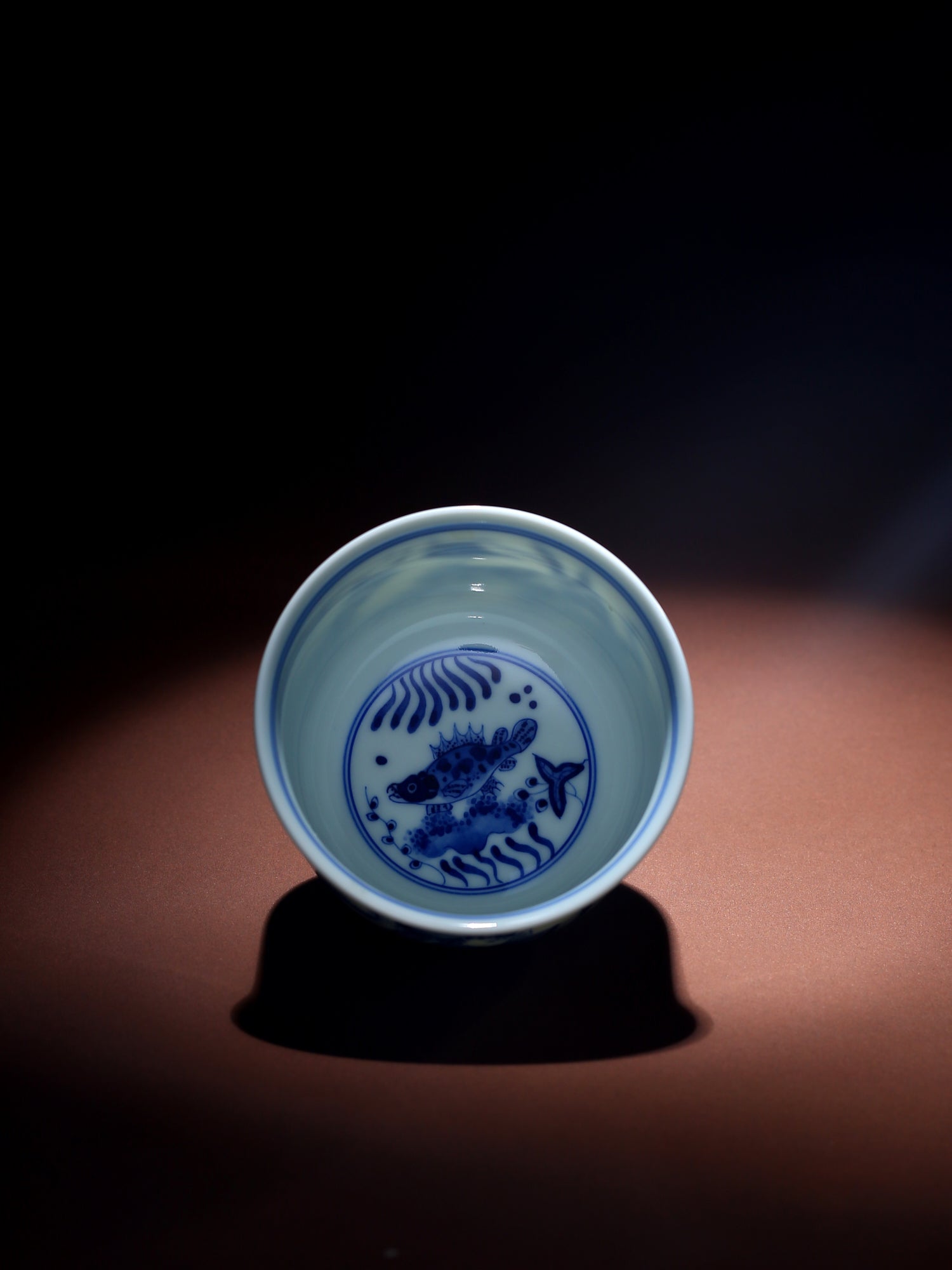 Oriday 青花陶磁製功夫茶杯|レトロな釉下彩の主人杯|おすすめの中式品茗茶杯